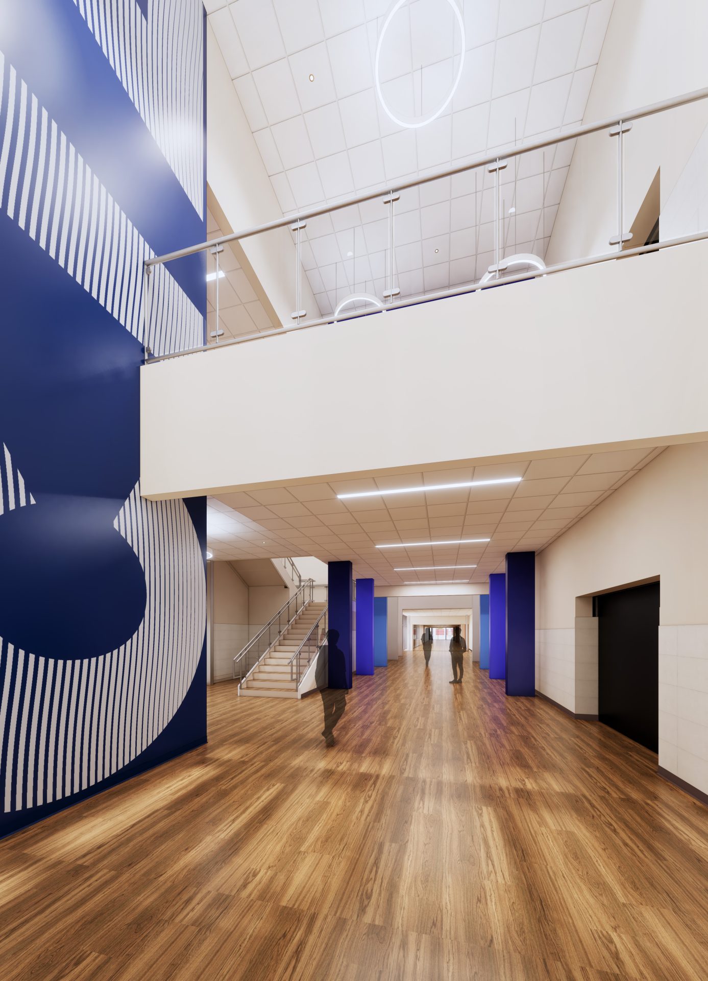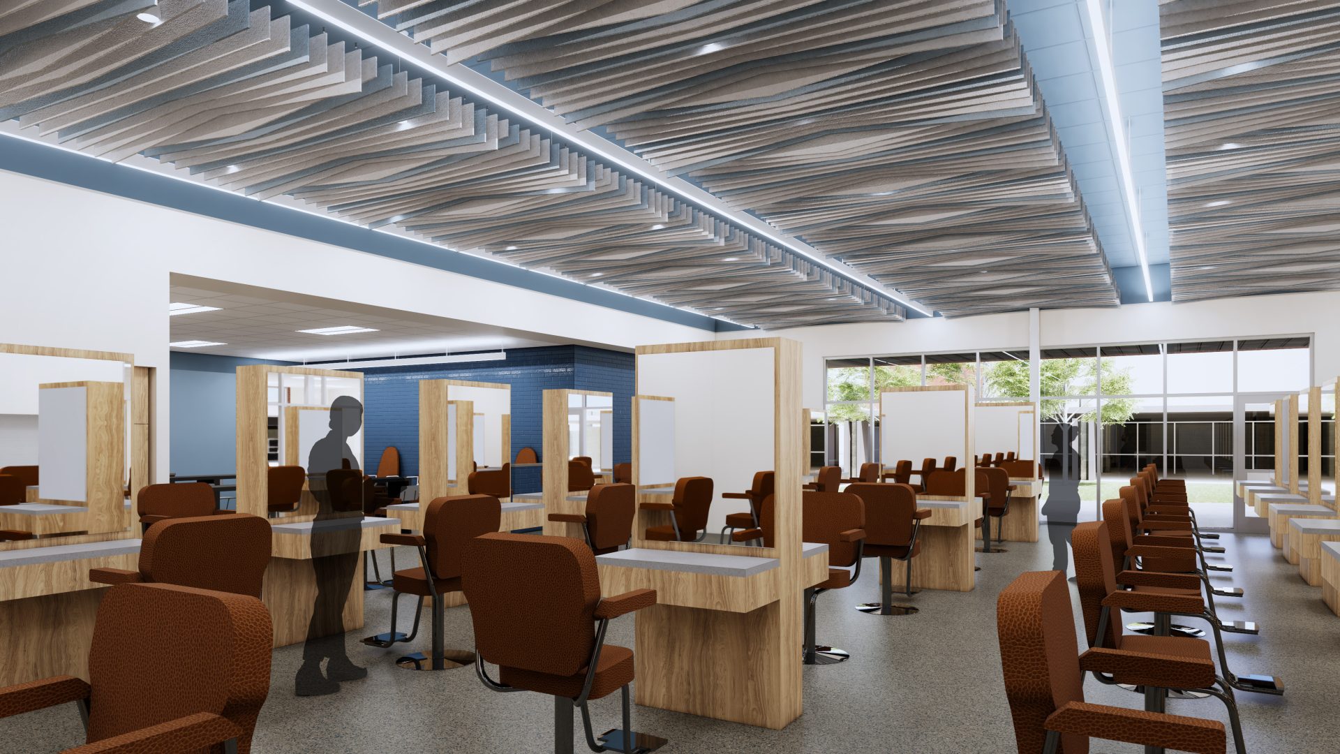 A new facility consists of a 36,200 SF, two-story addition alongside a 40,300 SF renovation. Designed to support Career and Technology Education for high school students, the new addition will include specialized classrooms, a student-run bistro, a cosmetology center, broadcasting studios, a pet grooming area, and a graphics printing lab. The existing CTE wing will be renovated to house programs including robotics and fashion. This renovation will update existing finishes and involves minor layout restructuring to ensure the entire facility meets current curriculum and technological needs.