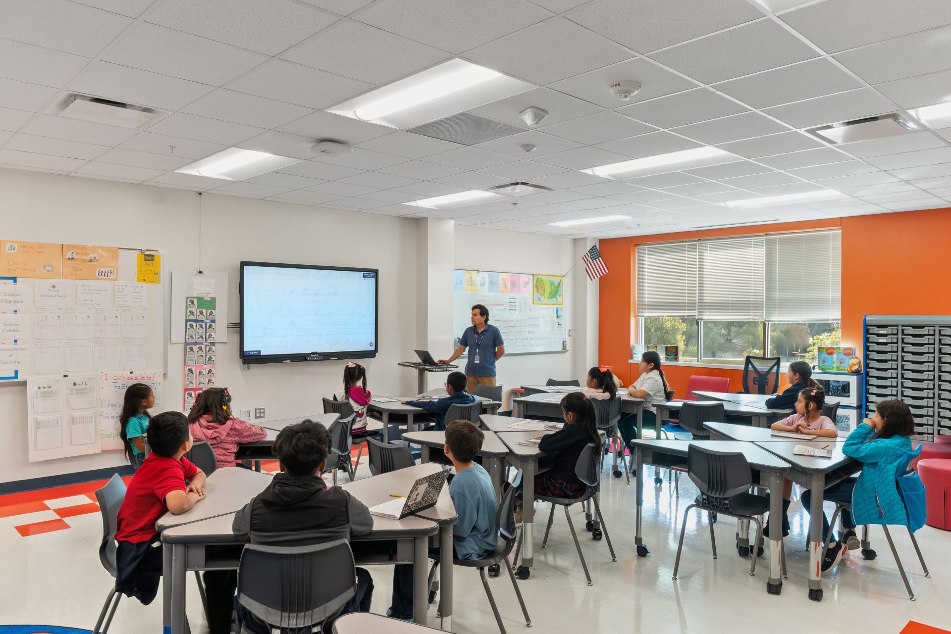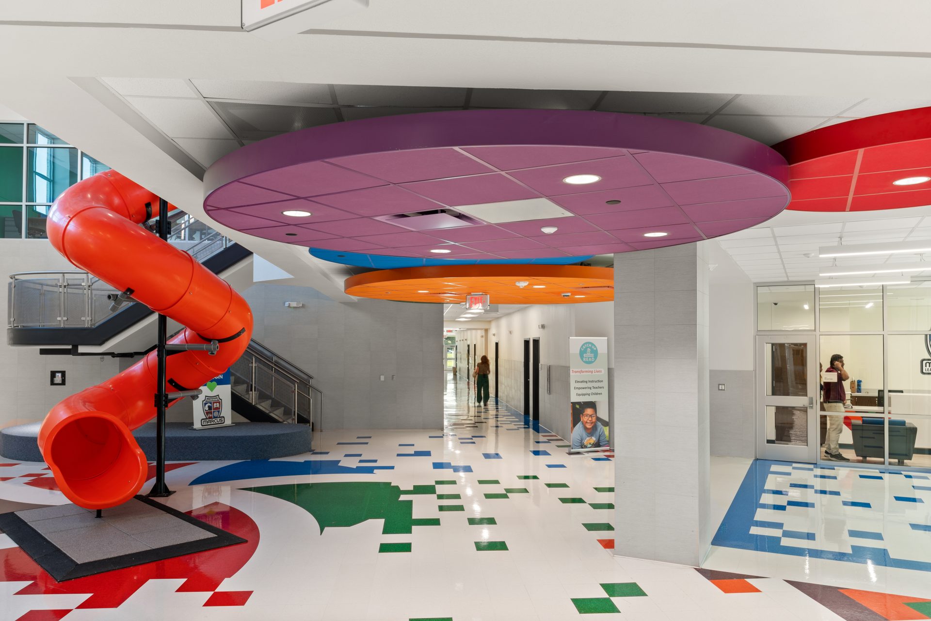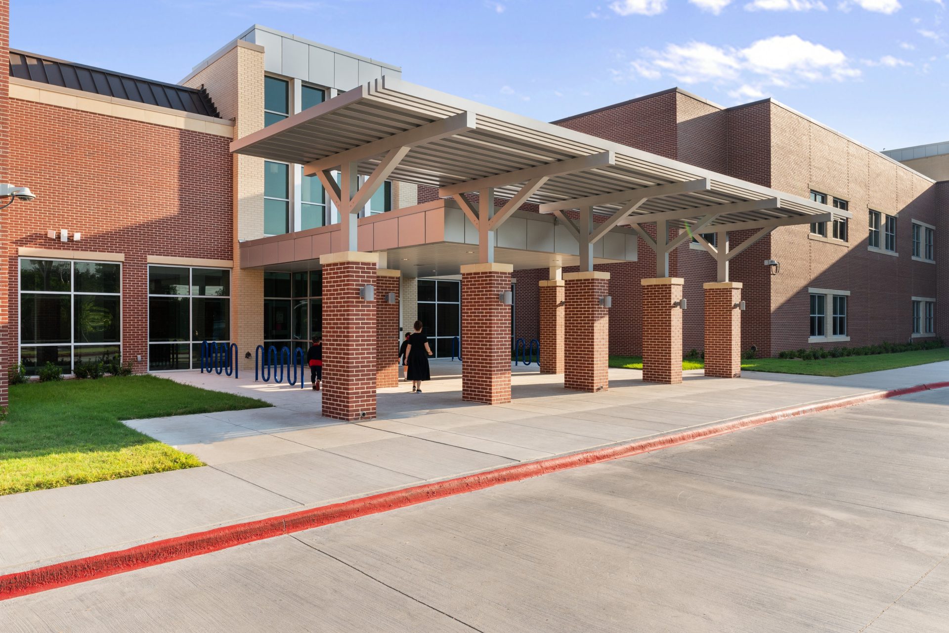 A new replacement campus, anchored by the integration and modernization of the original building’s “Area D” wing. Following the completion of new construction, the remaining original school structures were demolished to allow for final site work and the comprehensive renovation of the retained wing. The new academy includes an administration suite, classrooms across two floors, and a full-service kitchen and cafeteria, as well as a gymnatorium designed to serve as a high-capacity storm shelter.
